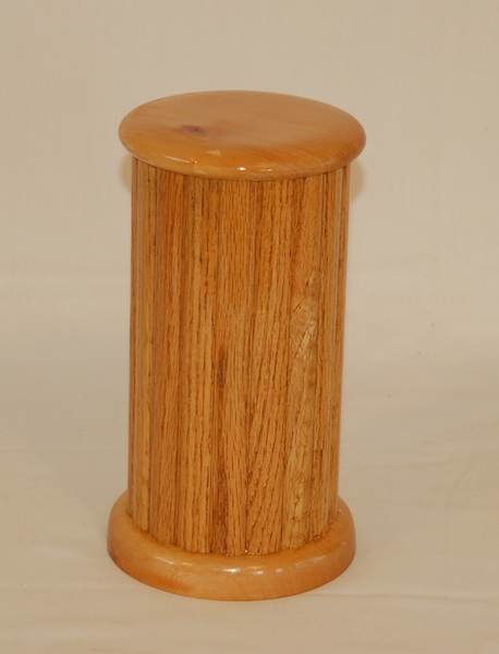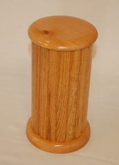 Description - This urn has a turned base and cap with vertical shaped panels with a removable bottom. Material - Oak & PineFinish - Oil base Varnish Dimensions - 5.25in x 9.25in Volume - 91 cubic inches Opening - Bottom Item Number # - 202 Price - $150 CAD How to get it |