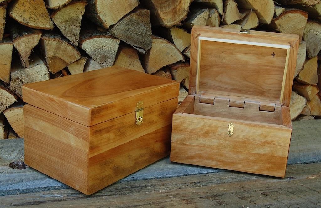 Description - This cedar box incorporates a wooden hinge and handle for easy opening. The combination of cedar and pine add interest along with the irregular lid closure line. Material - Cedar & PineFinish - Oil-base Varnish Dimensions - 12.5in x 10.25 x 6in Volume - 398 cubic inches Opening - Hinged Top Item Number # - 218 Price - $200 CAD How to get it |