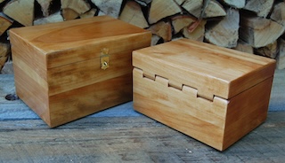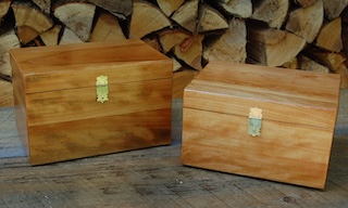 Description - This custom request for a simple matching urn pair incorporates a wooden hinge and clasp for later access. Material - MapleFinish - Outside is Tung Oil & Carnauba Wax, while inside is mineral oil and beeswax Dimensions - 10.5in x 7.25in x 6.5in Dimensions - 9.5in x 7.25in x 5.5in Volume - 223 cubic inches Volume - 147 cubic inches Opening - Hinged Top with clasp Item Number # - 241 Price - Custom Request How to get it |