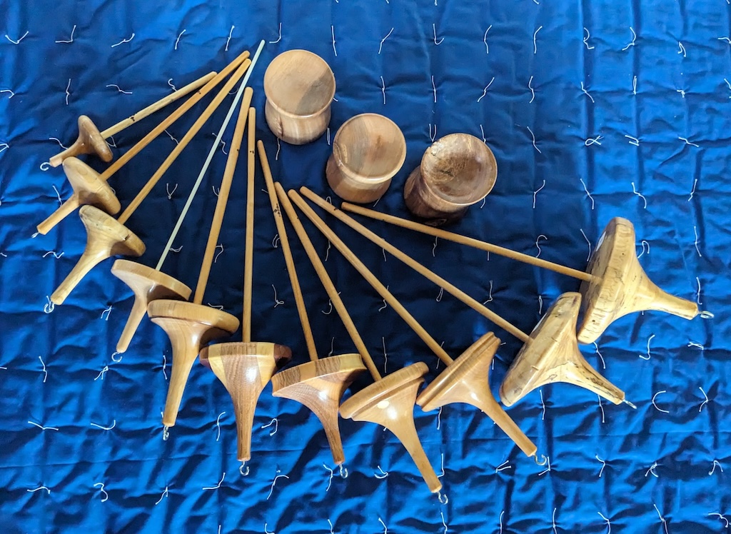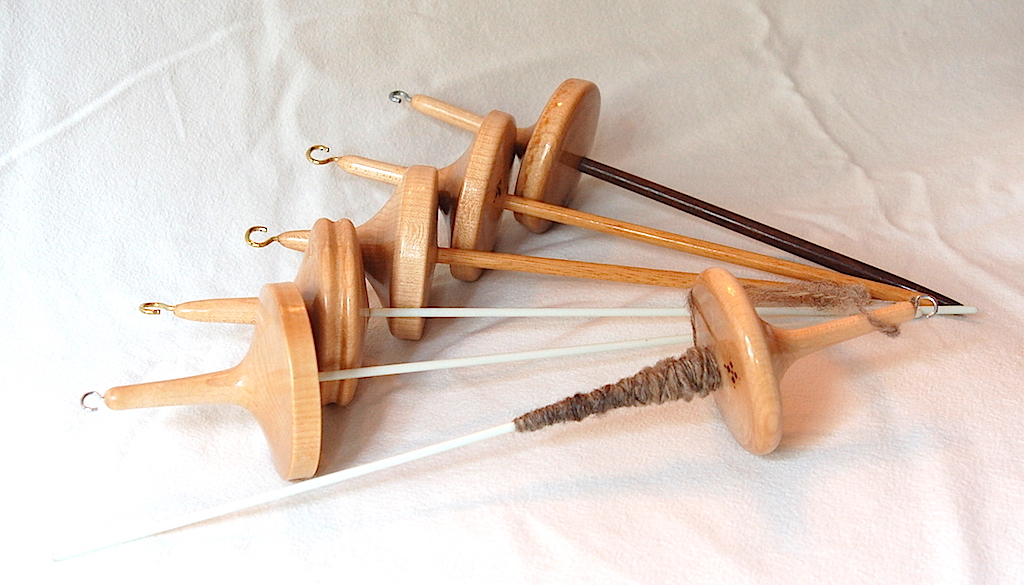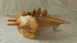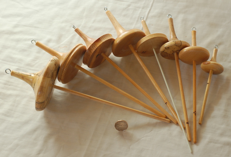 Description - Drop spindles made of various sizes and weights to meet the wool and desired finished product. Those with wooden shafts have been pre-drilled to enable the drop spindle to be inverted. Material - Wood tops with wood or fiberglass shaftFinish - Tung Oil & Carbanuba Wax Dimensions - 15cm to 30cm (6in - 12in) in length Weight - 1oz to 6oz (20g - 160g) Item Number # - 142 Price - Spindle $30 CAD & Base $5 CAD How to get it |
